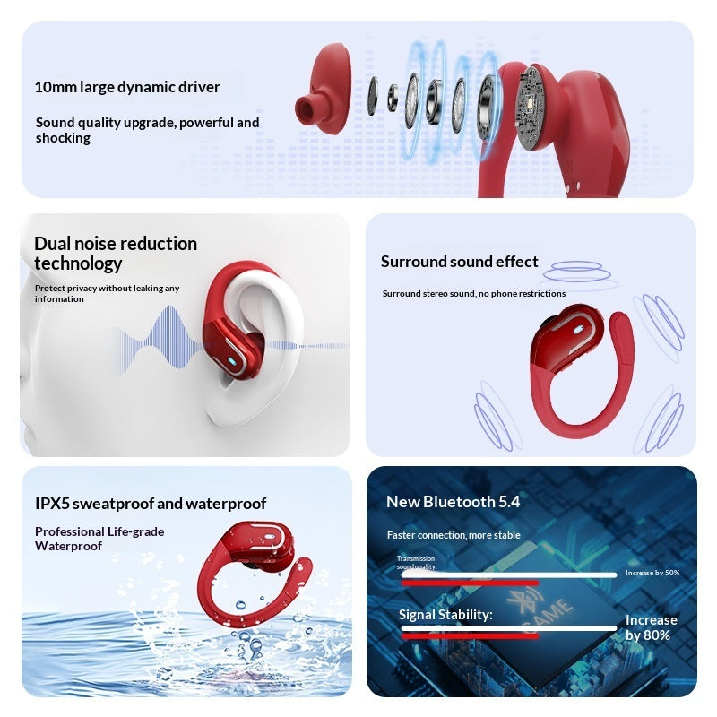 Whether you are gaming competitively or enjoying music on the go, the New Tech Noise-canceling Stereo Wireless Ear-hook Gaming Headset combines performance, comfort, and modern features in one compact design. Choose the New Tech Noise-canceling Wireless Ear-hook Gaming Headset for reliable wireless sound and a superior gaming experience.